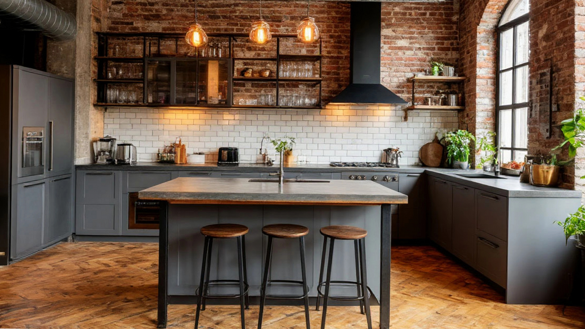 Эстетика лофта проявляется в контрасте фактур, цветов и материалов. Металл, дерево, стекло и камень создают динамичное и стильное пространство, а угловая планировка позволяет подчеркнуть все преимущества кухни. Центральная рабочая зона и остров (при его наличии) обеспечивают удобство приготовления пищи, а открытые полки и встроенные системы хранения помогают организовать пространство и сделать его визуально легким и просторным.