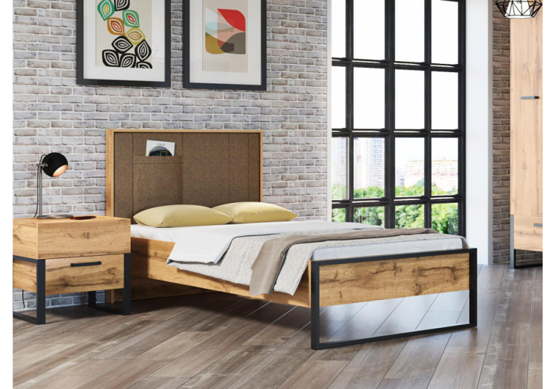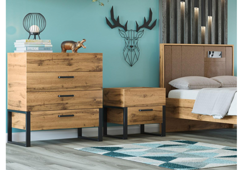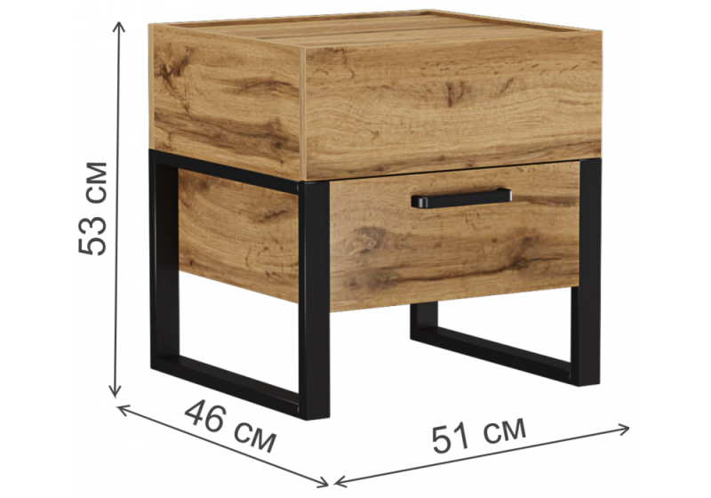 Тумба прикроватная Iris металл дуб вотан / черный муар (51x46x53).