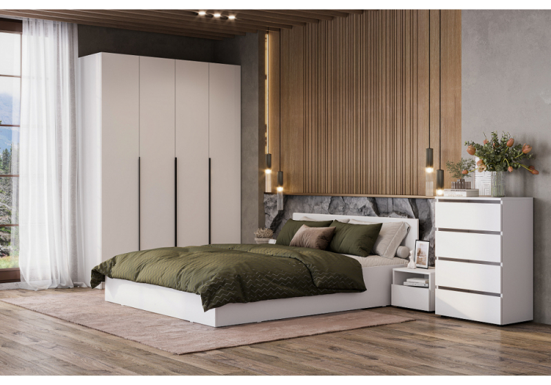 Шкаф Даиго четырехстворчатый белый текстурный (160,1x50,6x221,6)
