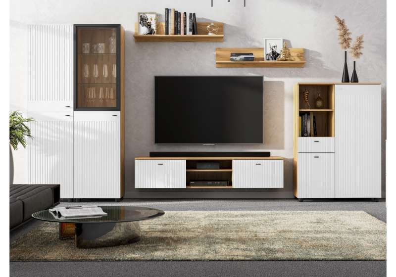 Шкафы Эдолина дуб золотой / черный / белый матовый (50,1x41,6x191,4)