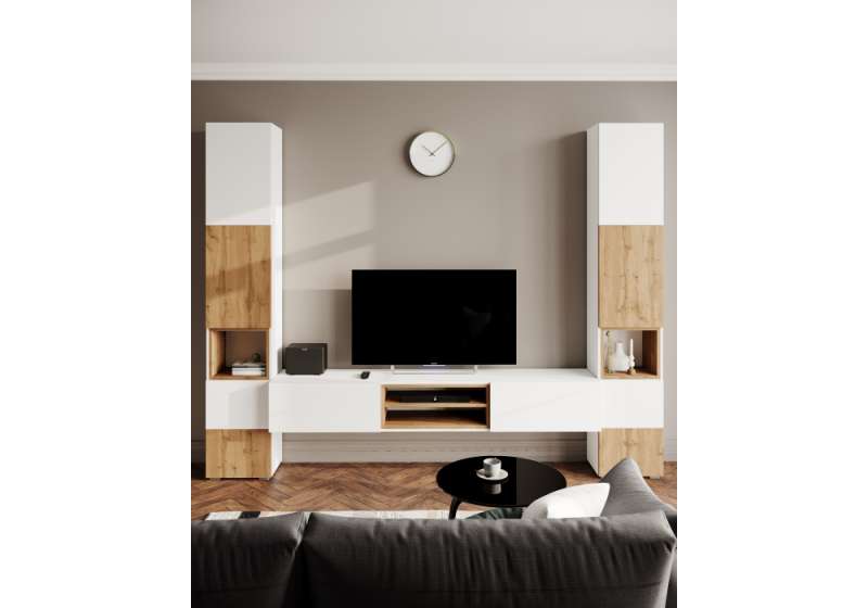 Стеллаж Лонгфорд белый / дуб вотан (40,2x30,4x217,6).