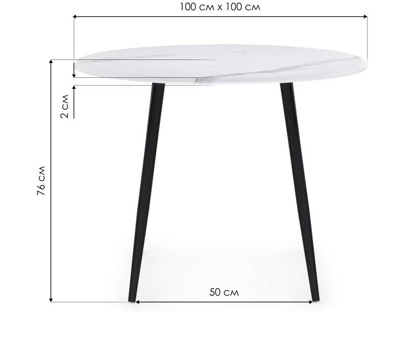 Расстояние между ножками: 50 х 50 см. Толщина столешницы: 2,2 см.