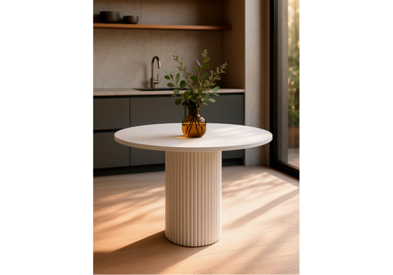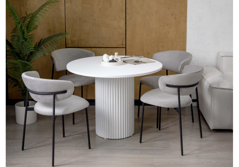 Стол обеденный Барел" – стиль и надежность в каждой детали 110х110 см – оптимальное пространство для комфортного размещения 5 человек. Столешница: - Толщина 22 мм из прочного МДФ – устойчивость к нагрузкам и долговечность. (см. статью: Что такое МД