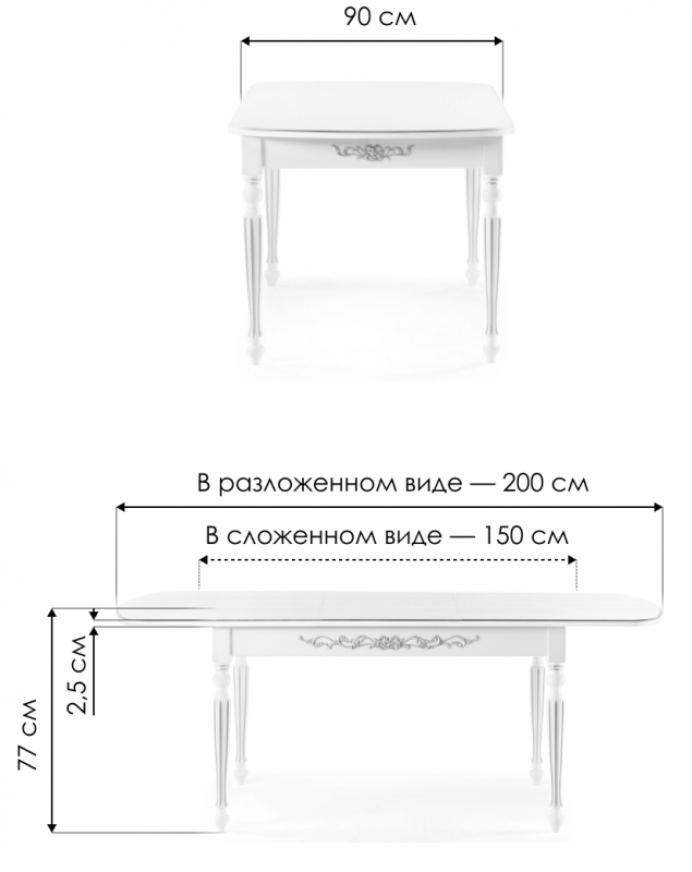 Длина стола в разложенном виде: 200 см.