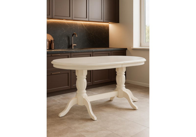 Стол деревянный Эвклаз овальный бежевый (90x77).