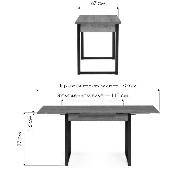 Стол деревянный Форли 110(170)х67х77 рошелье / черный матовый (67x77).