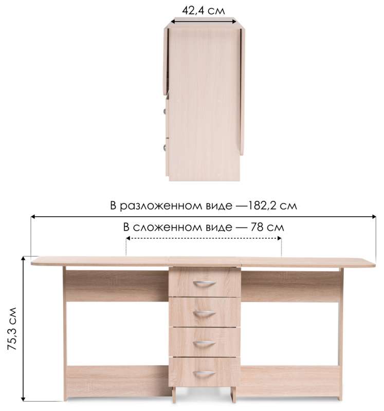 Стол деревянный Глория 606 М 182,2х78х75 с ящиками дуб сонома (78x75).