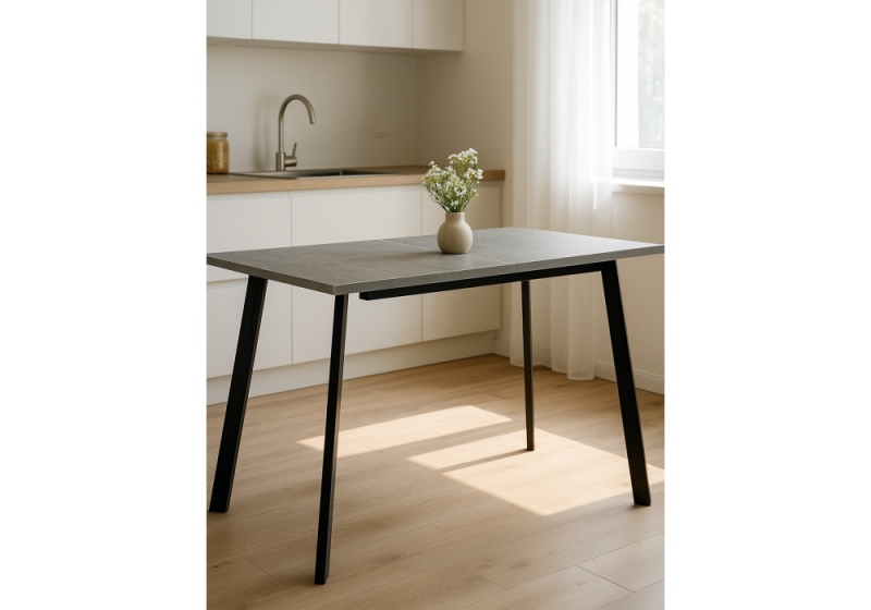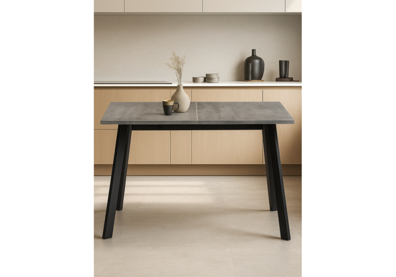 Стол деревянный Колон Лофт 120(160) х 75 черный матовый / бетон (75x75).