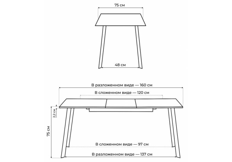 Стол деревянный Колон Лофт 120(160) х 75 черный матовый / бетон (75x75)