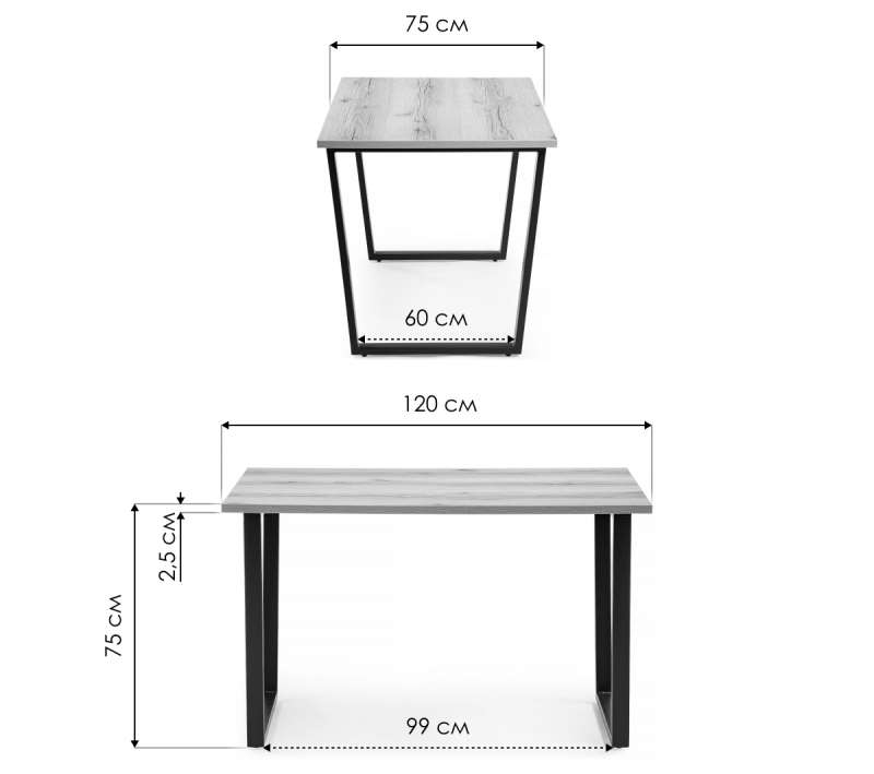 Стол деревянный Лота Лофт 120х74х75 25 мм юта / матовый черный (75x75).