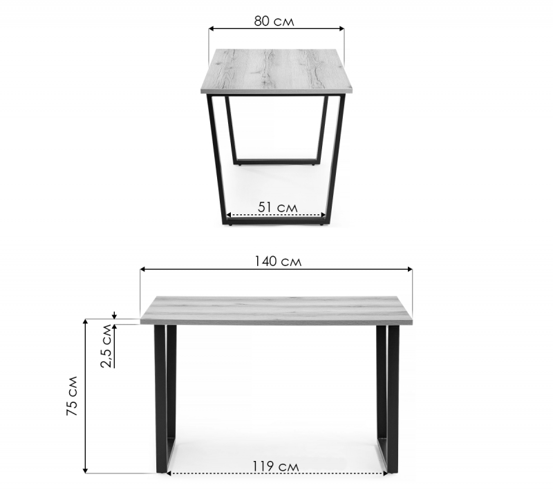 Стол деревянный Лота Лофт 140х80 белый матовый / дуб крафт золотой (80x75).