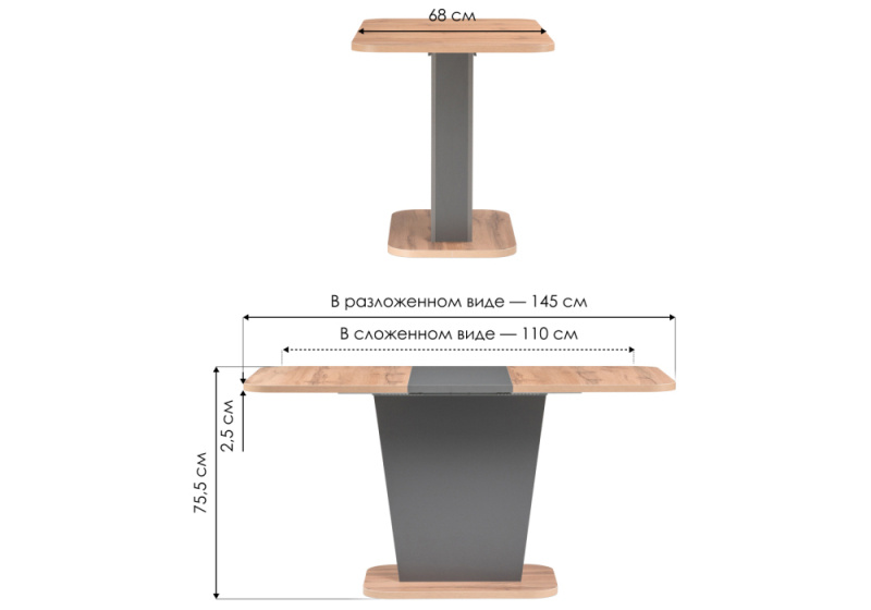 Длина стола в разложенном виде: 145 см.