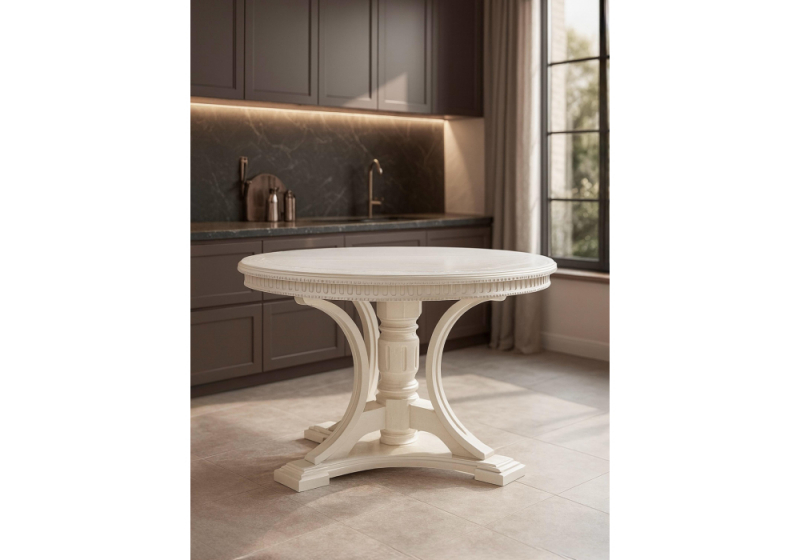 Стол деревянный Нозеан круглый бежевый / золото (120x76).