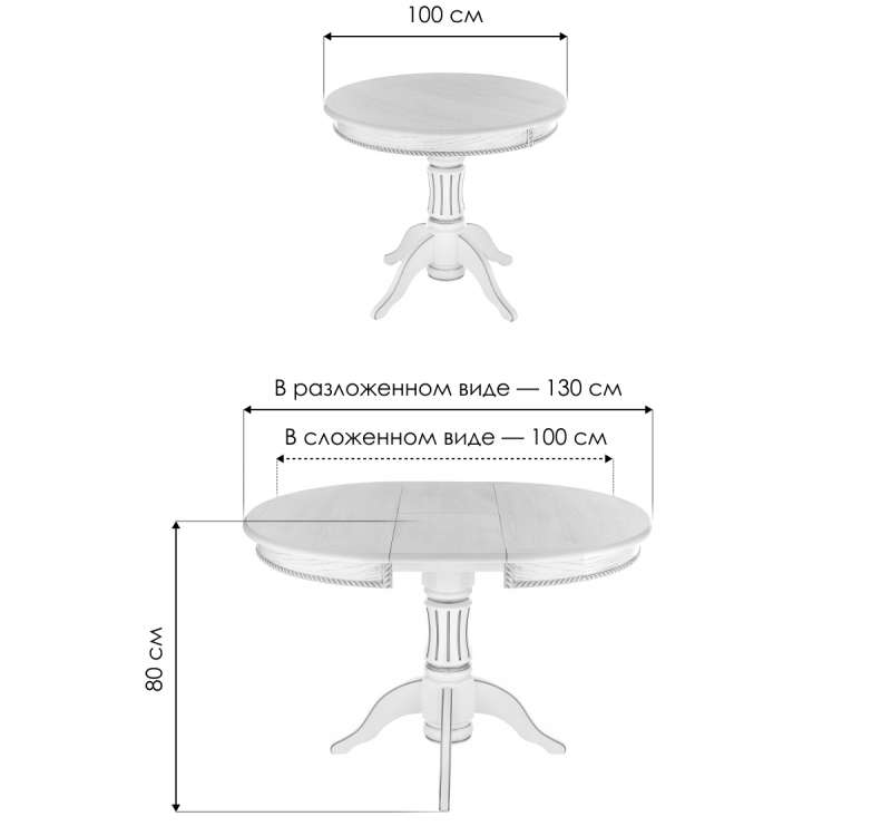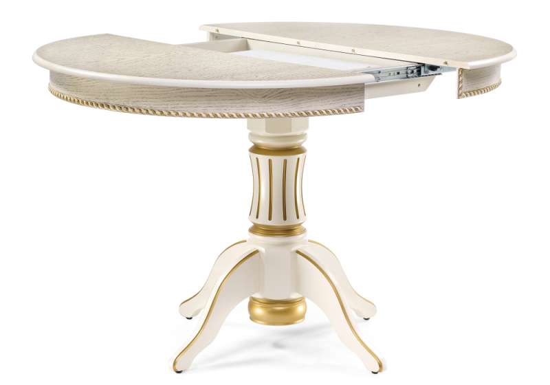 Стол деревянный Павия 100(130)х100х79 слоновая кость с золотой патиной (100x79).