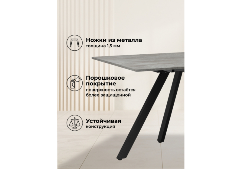 Стол деревянный Райн 116(160)x77 раздвижной цемент / черный (77x77)