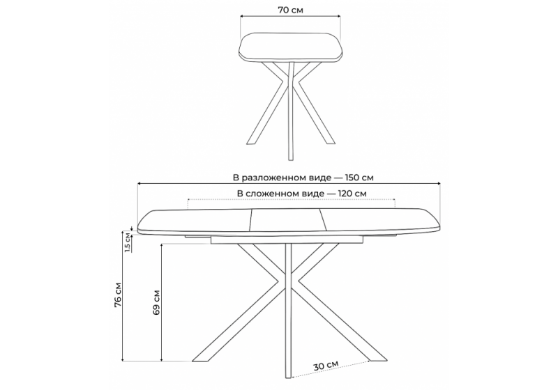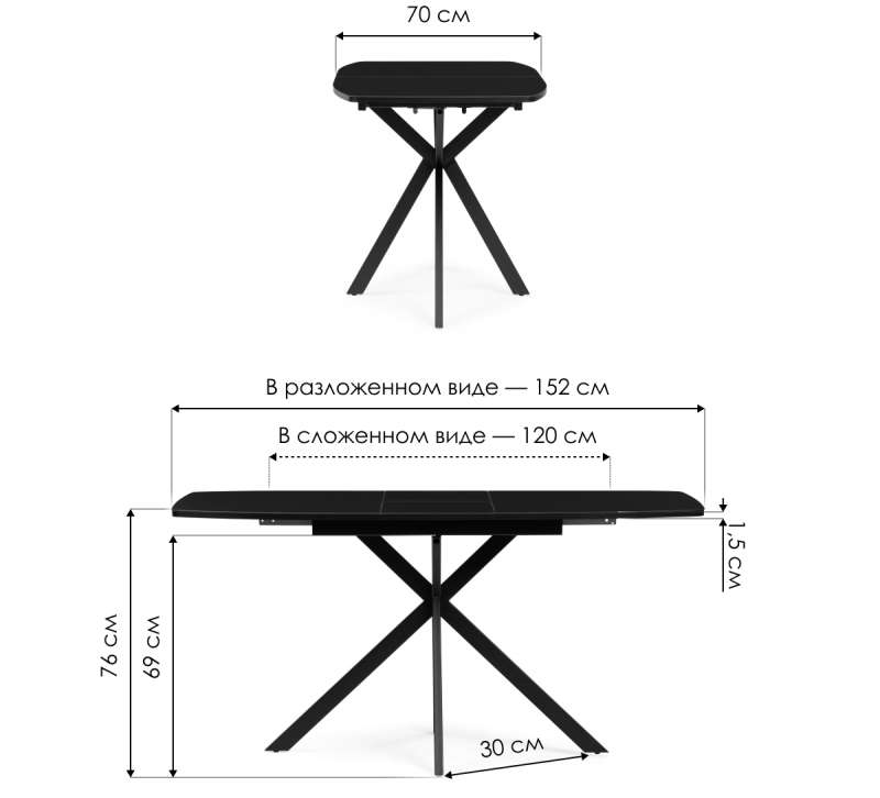 Расстояние между ножками: 30 см. Толщина столешницы: 1,5 см.