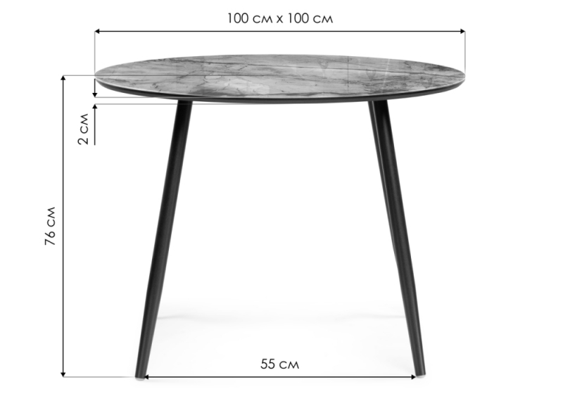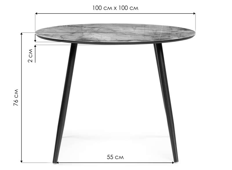 Стол стеклянный Анселм 100х76 магеллан / черный (100x76).