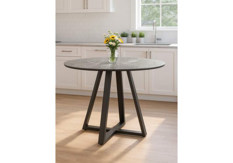 Стол стеклянный Норфолк 100 серый мрамор / черный (100x78)