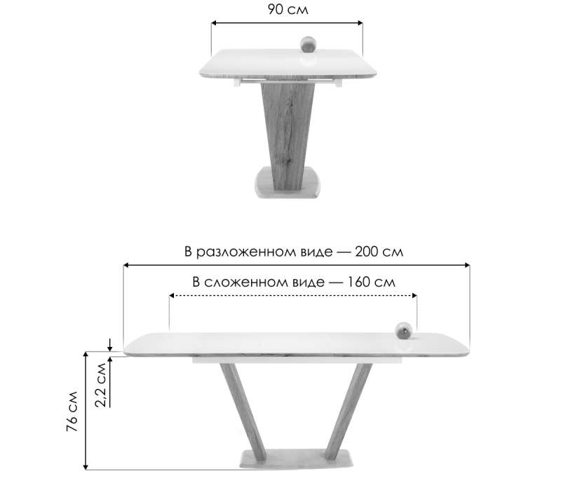 Стол стеклянный на тумбе Петир 160 белый / дуб монтана (90x76).