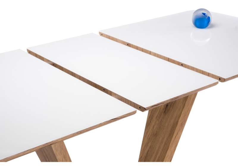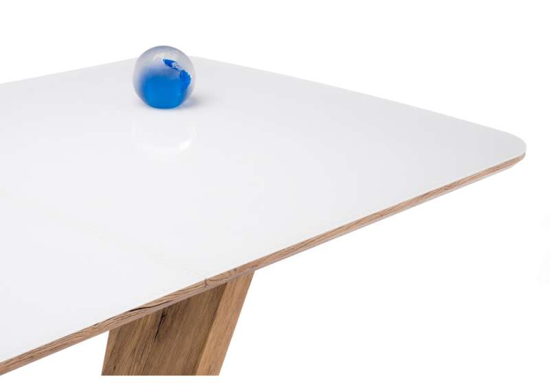 Стол стеклянный на тумбе Петир 160 белый / дуб монтана (90x76)