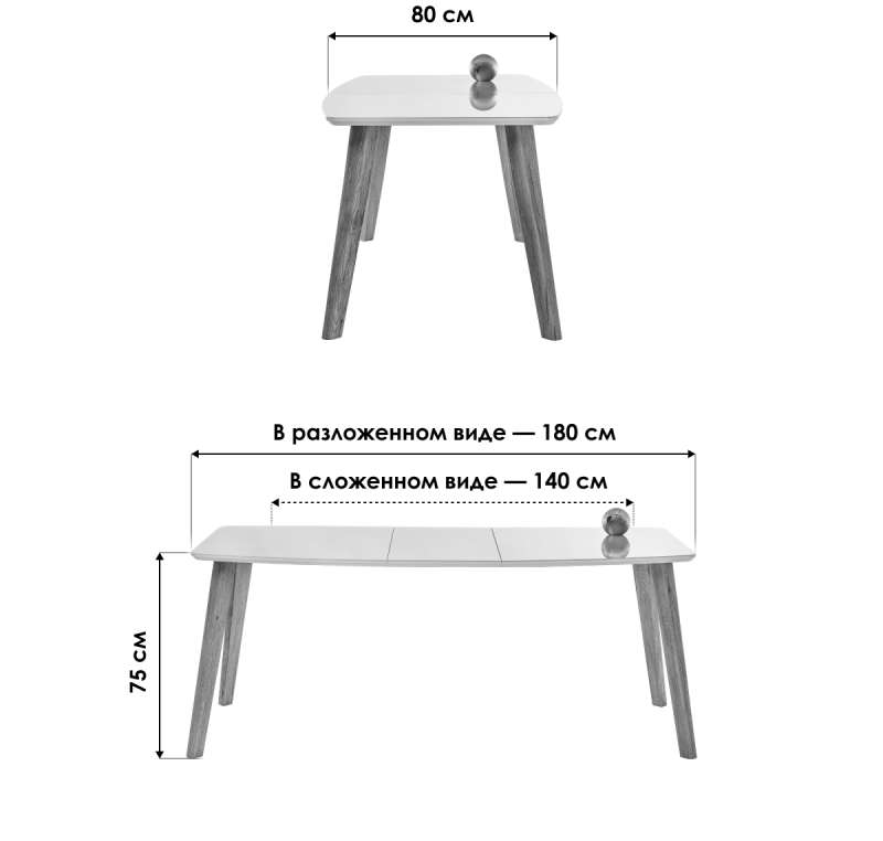 Длина стола в разложенном виде: 180 см.