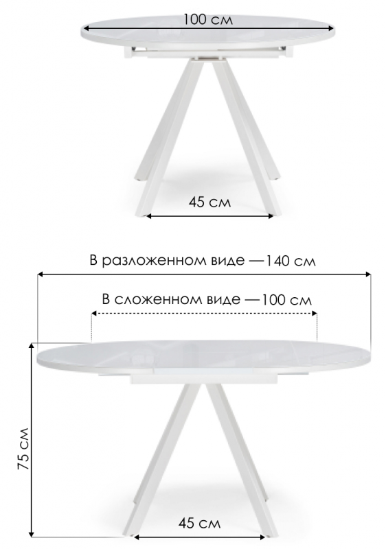 Стол стеклянный Трейси 100(140)х100х75 белый (100x75)