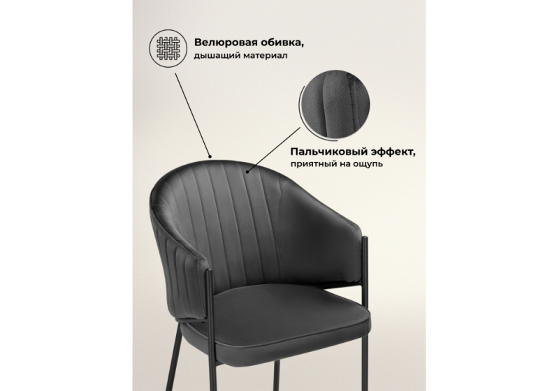 Стул на металлокаркасе Kortni dark grey / black (56x62x82).